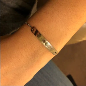 L'ho preso per la mia migliore amica per Natale e le è piaciuto molto! Quando esegui la scansione del codice nell'app Spotify, riproduce la nostra canzone preferita. Non ci è voluto molto tempo per la spedizione. Bracciale di buona qualità. -