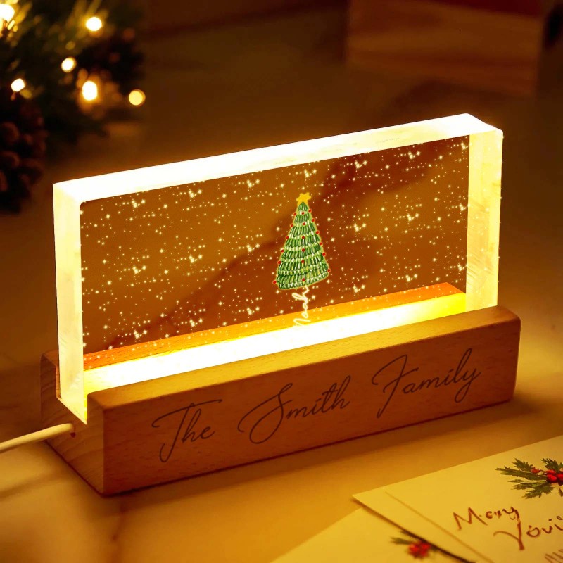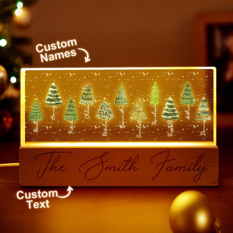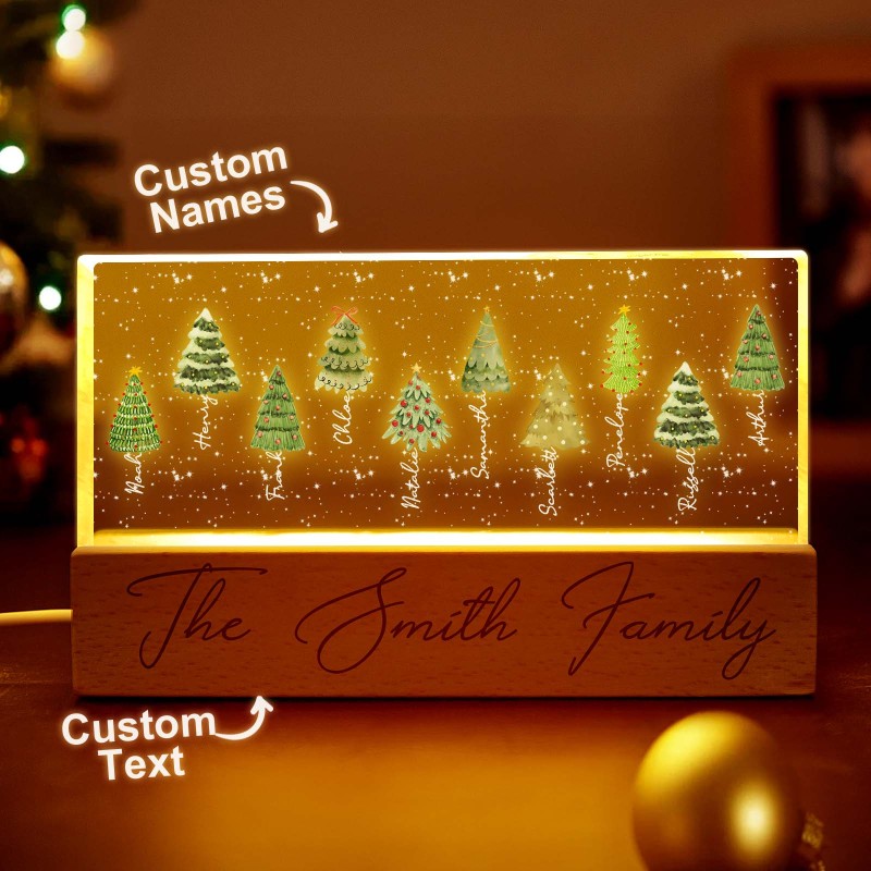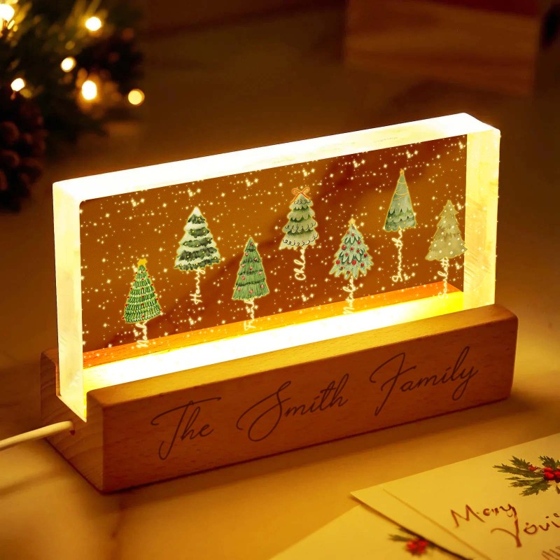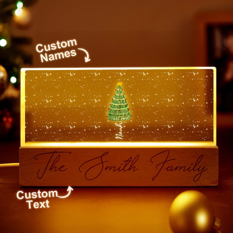 Lampada Notturna A Led Personalizzata Con Blocco Acrilico E Nomi Di Famiglia Per L'albero Di Natale.