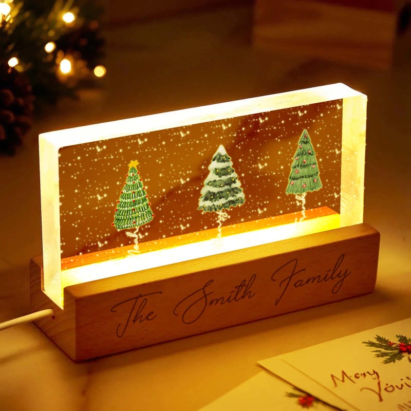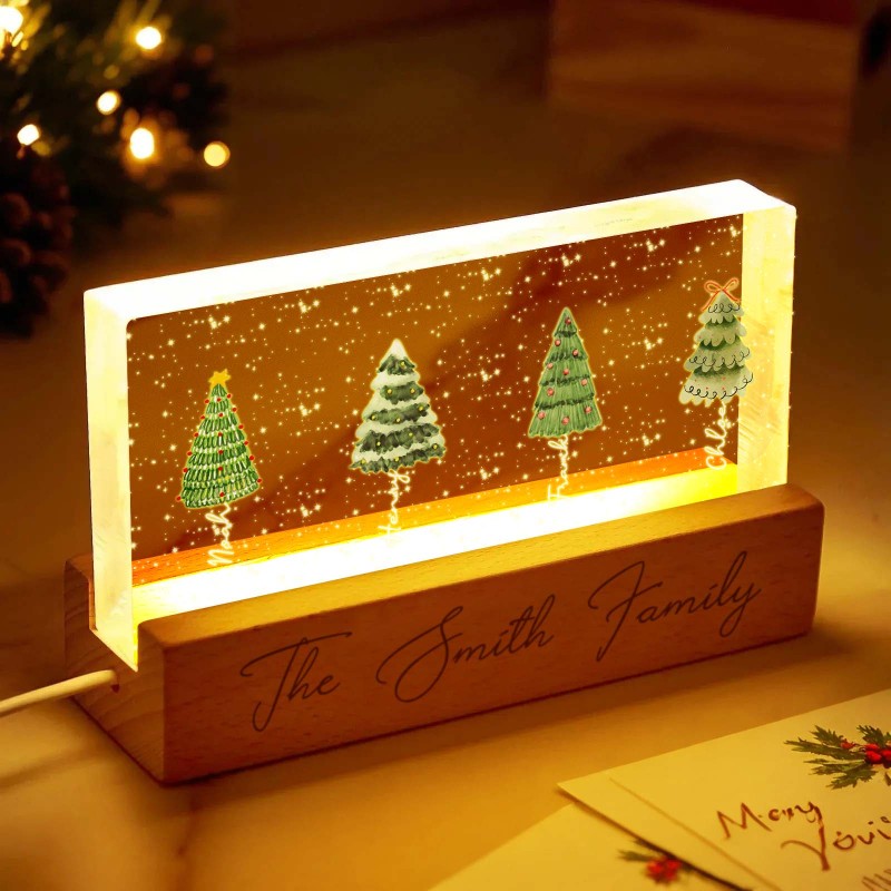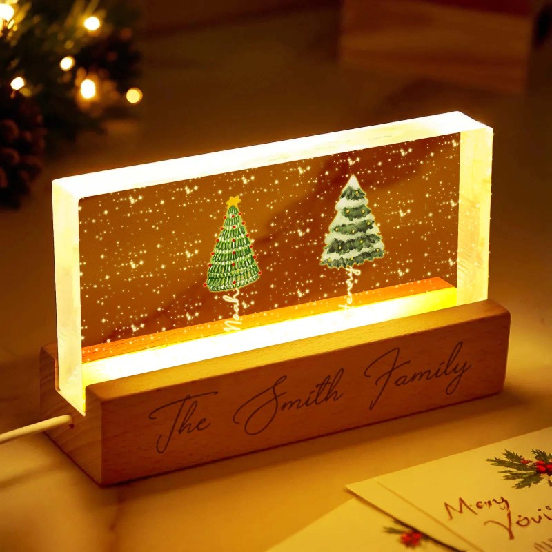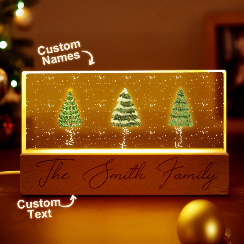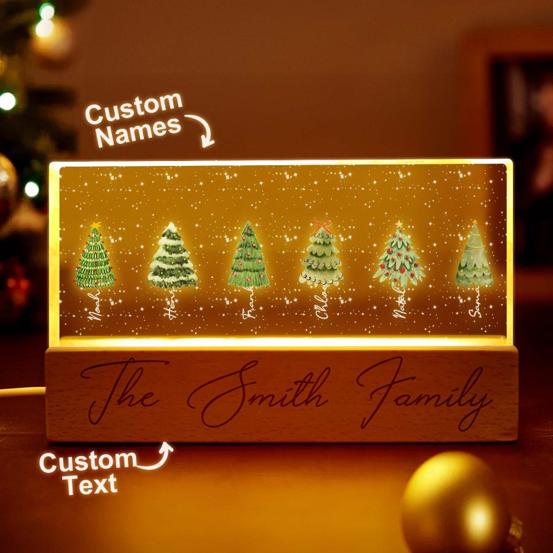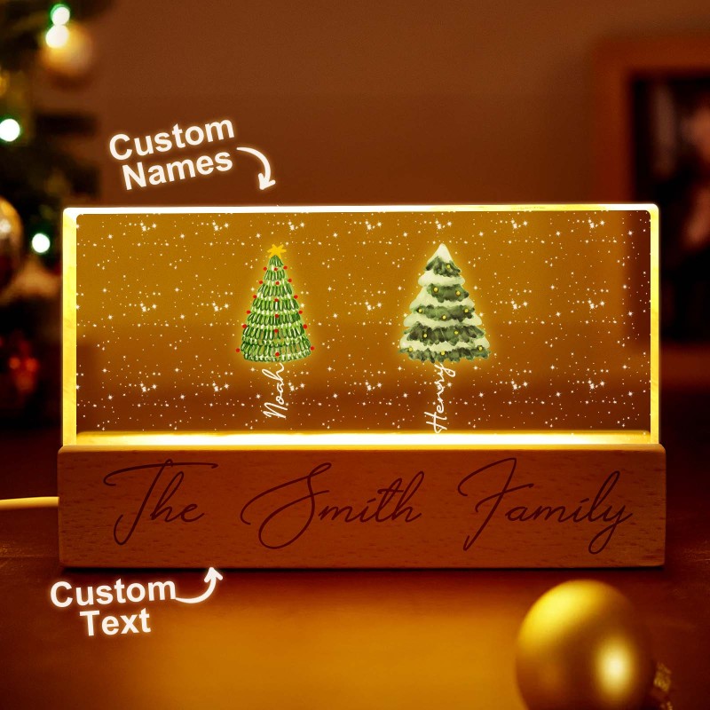 Lampada Notturna A Led Personalizzata Con Blocco Acrilico E Nomi Di Famiglia Per L'albero Di Natale.