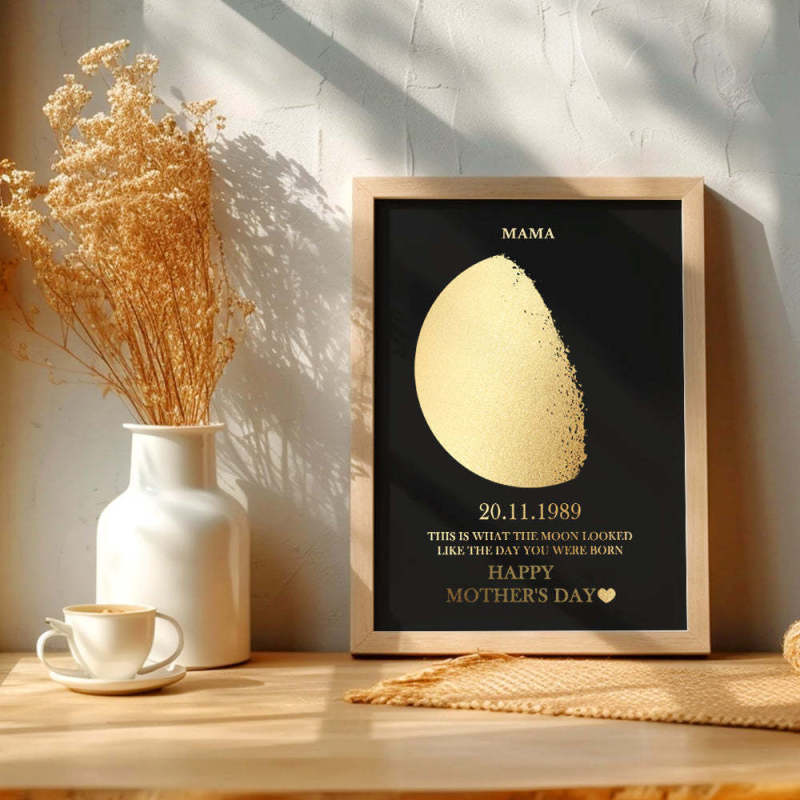 Cornice In Legno Personalizzata Con Stampa A Lamina D'oro, Fasi Lunari E Nomi, Con Il Tuo Testo. Cornice Artistica Personalizzata Per La Festa Della Mamma, Il Miglior Regalo Per La Mamma.