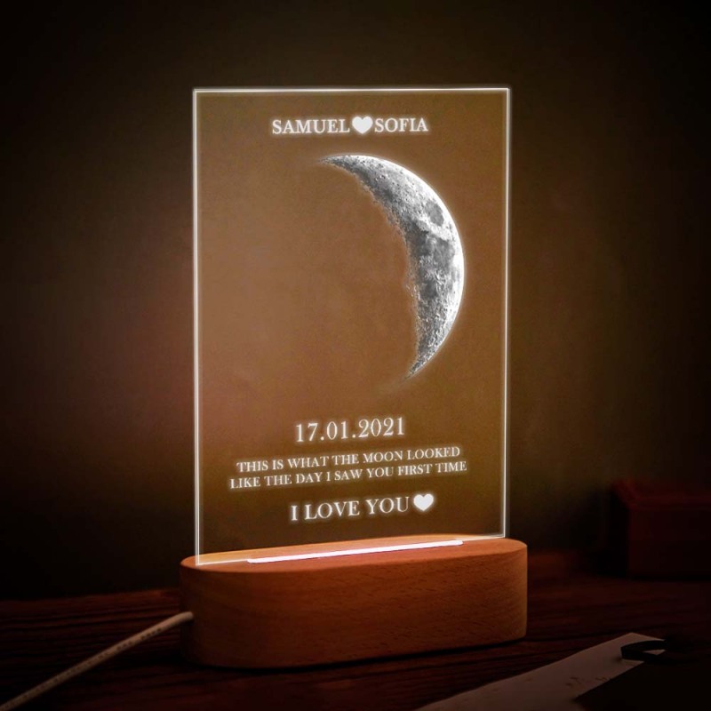 Lampada Personalizzata Con Fasi Lunari Con Nomi Personalizzati, Testo, Luce A Sette Colori