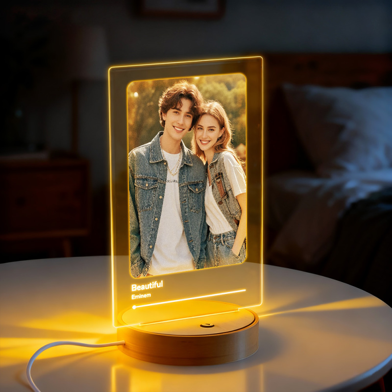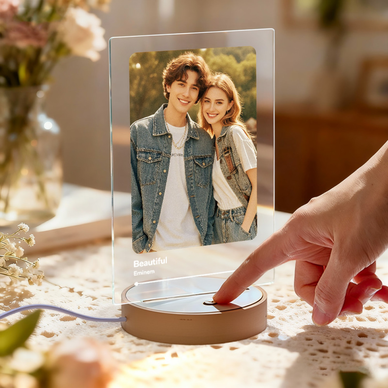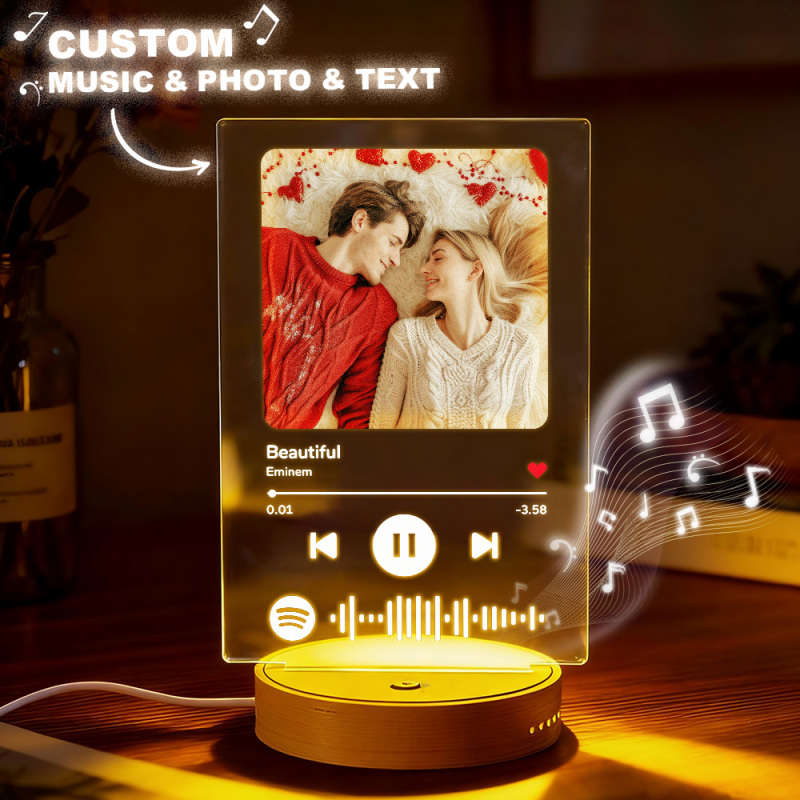 Targa Musicale Personalizzata Con Riproduzione A Un Clic, Luce Notturna A Led E Altoparlante Integrato, Riproducibile Anche Senza Telefono.