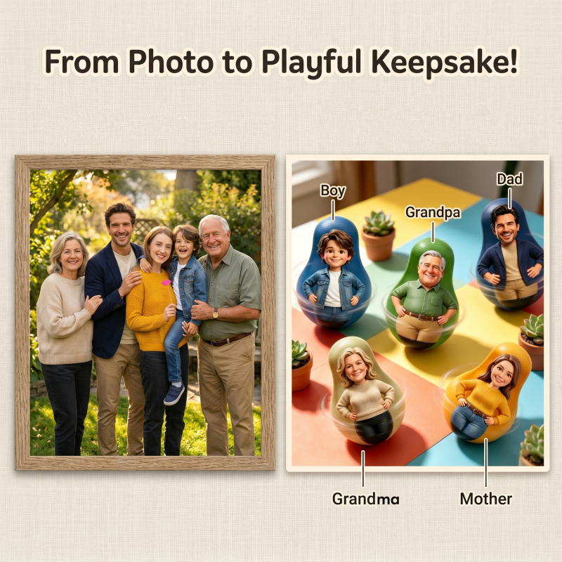 Bambola Oscillante Personalizzata Con Foto, Bambola Rotolante Personalizzata, Ornamento Fatto A Mano Unico, Regalo Per La Tua Famiglia E I Tuoi Amici