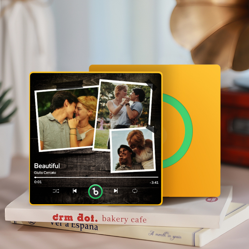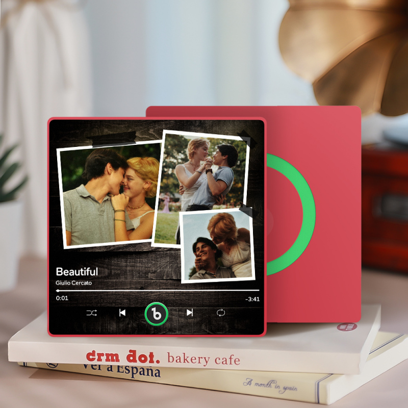 Magnete Da Frigo Personalizzato, Aggiornamento Con Sfondo Personalizzato Effetto Legno Rosa, Magnete Da Frigo Personalizzato Con Foto Musicale Per La Persona Amata