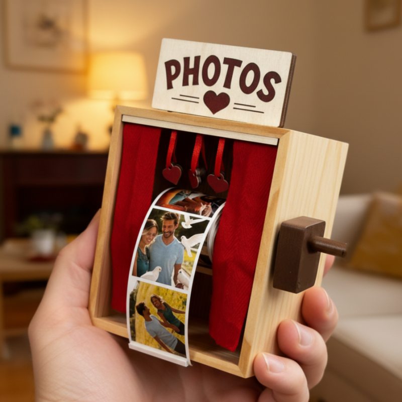 Cabina Fotografica A Manovella, Espositore Fotografico Manuale A Scorrimento, Regalo Ricordo Personalizzato, Regalo Per Coppie