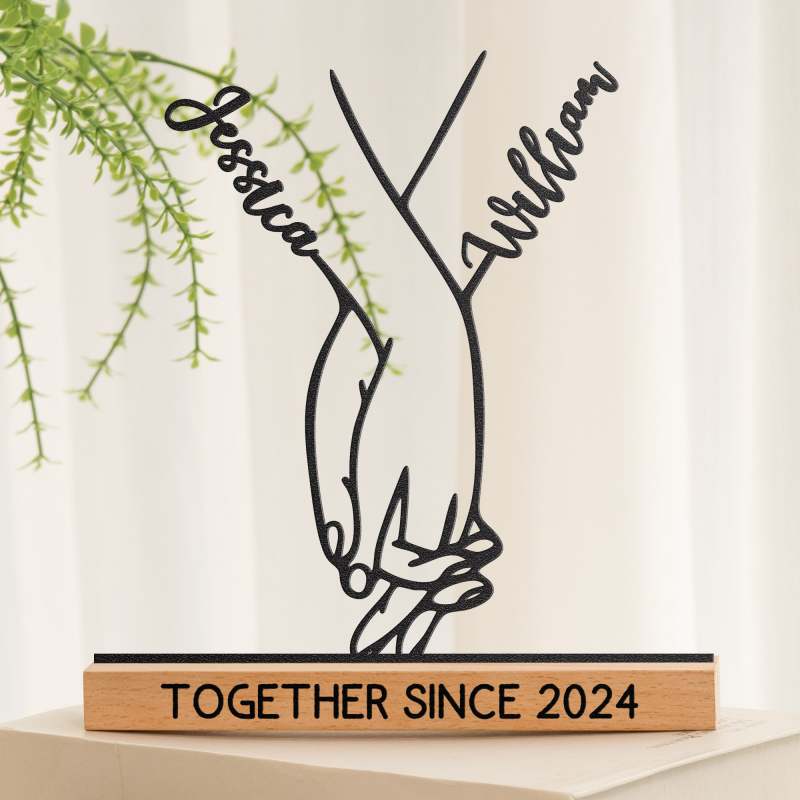 Sagoma Di Mani Di Una Coppia Che Si Tiene Per Mano - Scultura In Metallo Personalizzabile Da Scrivania