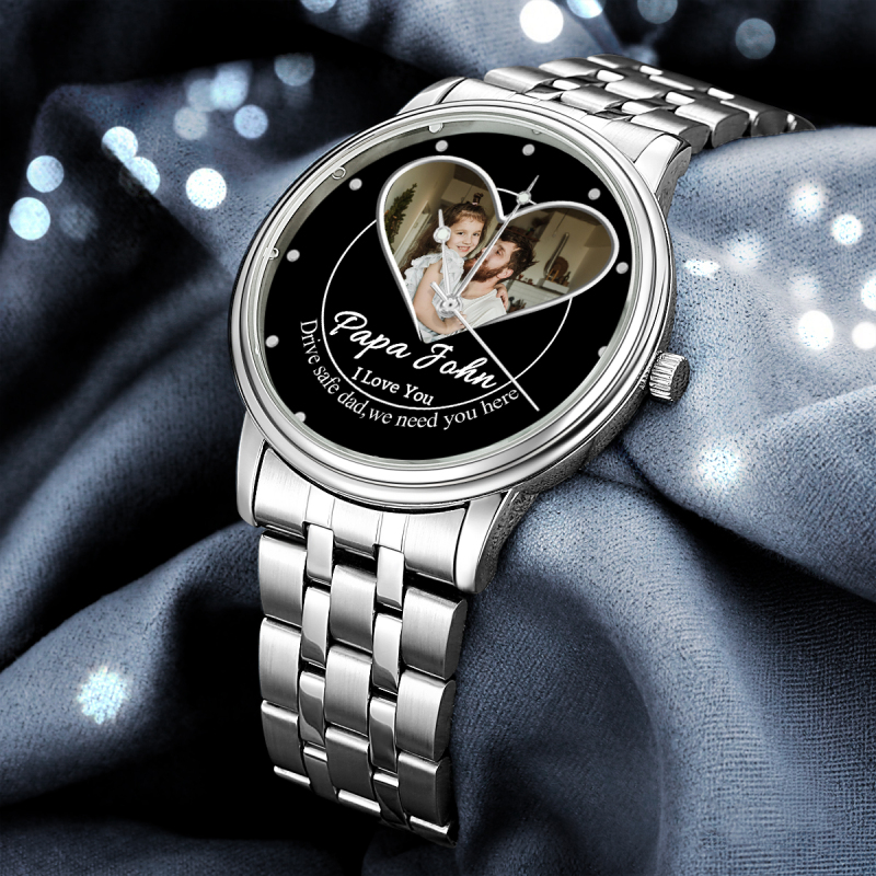 Caricamento Foto Con Cornice A Cuore - Orologio Personalizzato In Metallo Di Acciaio Inossidabile Per La Famiglia