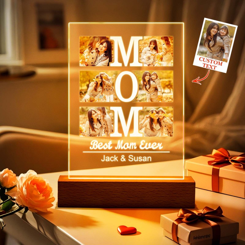 Cornice Portafoto E Luce Notturna Personalizzate In Acrilico Per La Mamma - Regali Personalizzati Per Il Compleanno Della Mamma