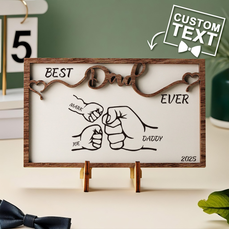 Regalo Personalizzato Per La Festa Del Papà, Pugno Chiuso, Cartello Con Cornice Per Papà E Figli, Cartello In Legno, Cartello Con I Nomi Dei Figli Del Papà, Cartello Personalizzato Per La Famiglia Con Il Marito