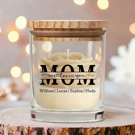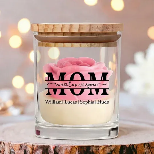 Candela Personalizzata In Cera Di Soia Con Motivo Floreale – Regalo Personalizzato 'ti Vogliamo Bene' Per La Mamma, Speciale Per La Festa Della Mamma