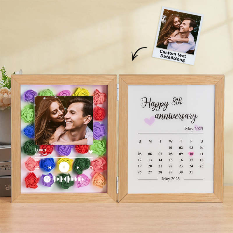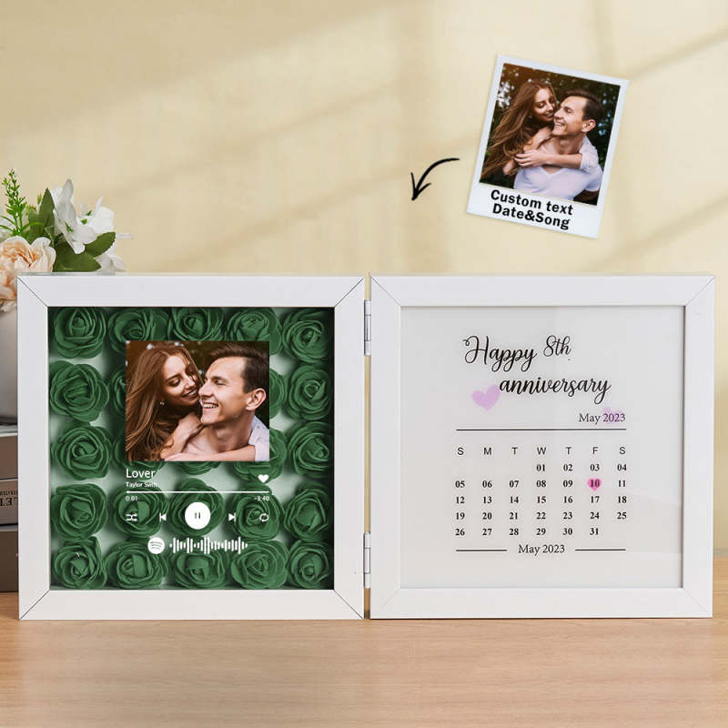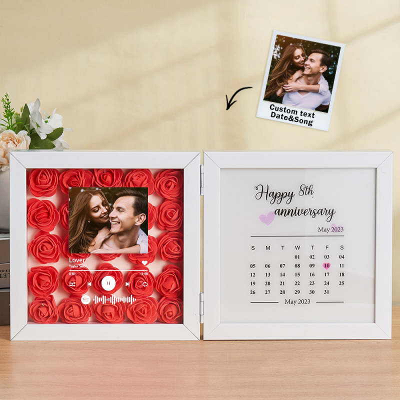 Cornice Pieghevole Con Foto Personalizzata Con Fiore Rosa, Codice Musicale Personalizzato, Regalo Di Anniversario Per Coppia